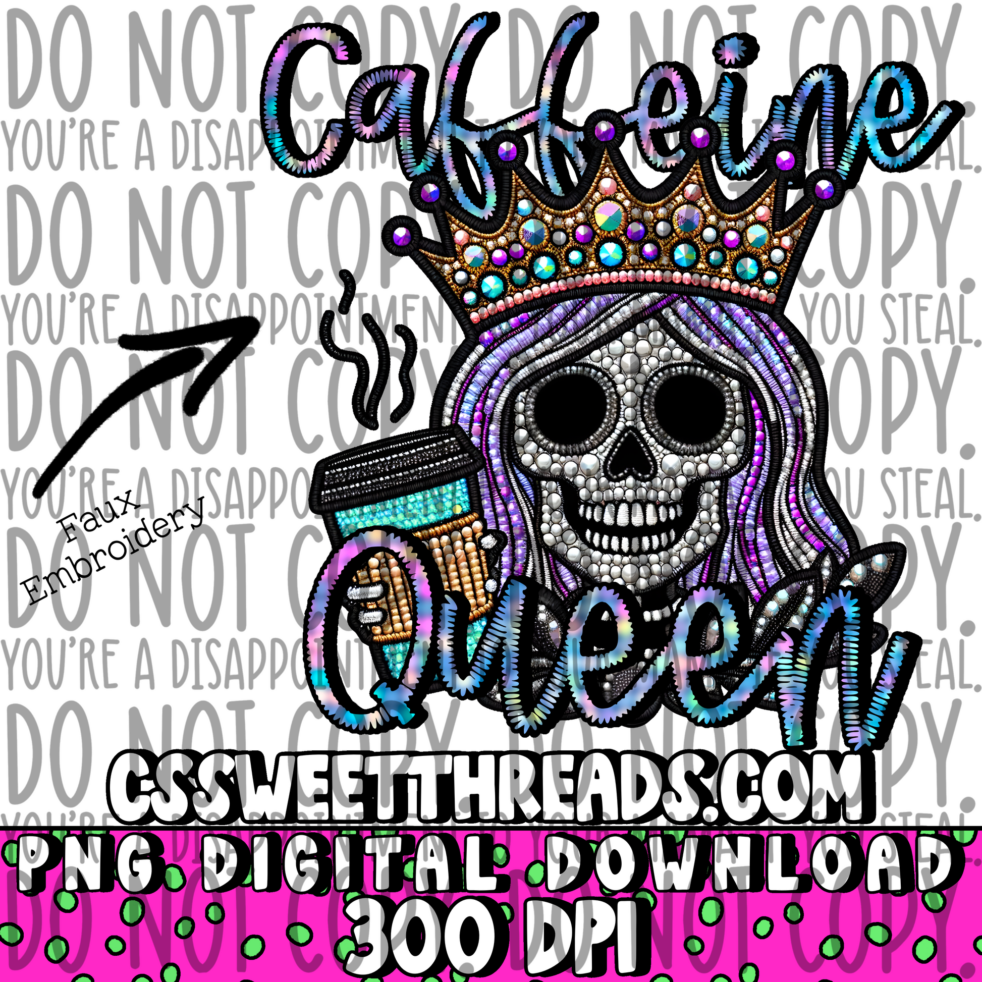 Caffeine Queen Faux Embroidery