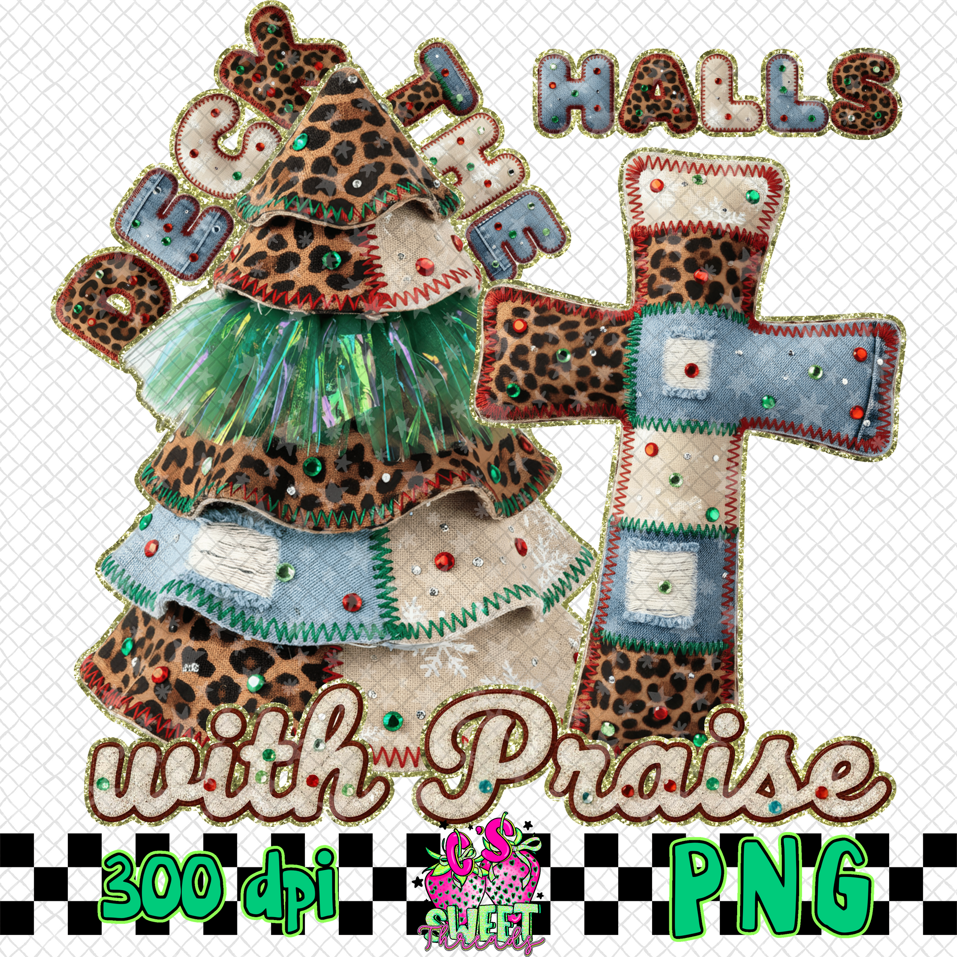 Deck The Halls With Praise Faux Embroidery